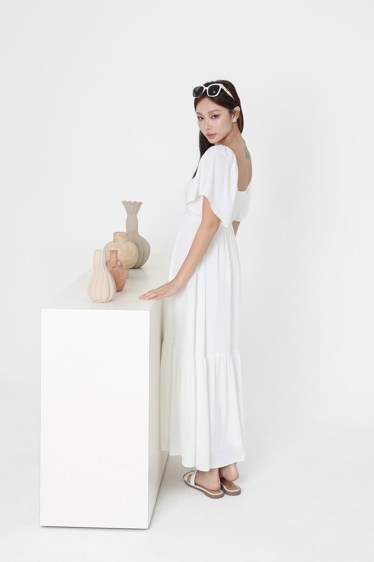 (PREORDER) *TPZ* DIARA DROP HEM SLEEVES MAXI DRESS 2.0 IN WHITE